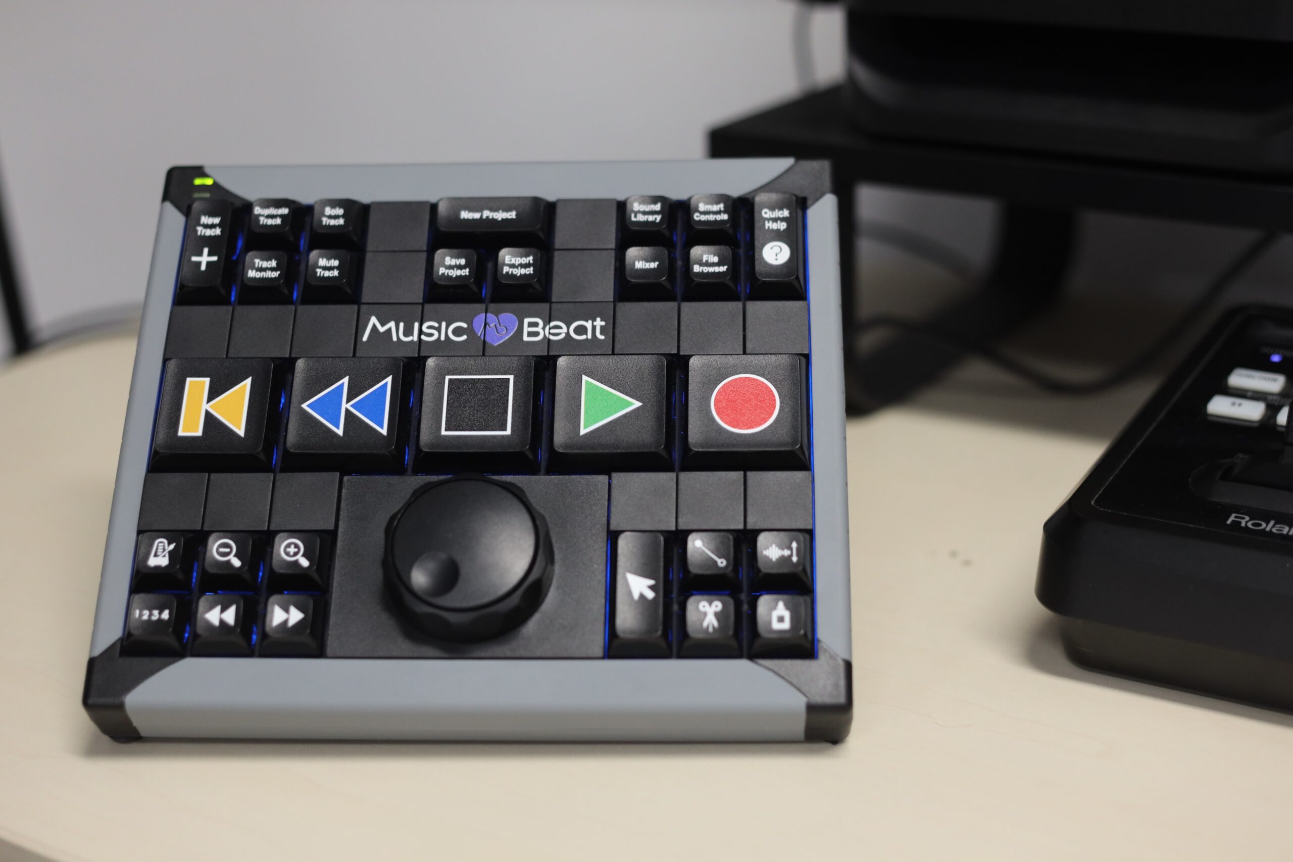 Custom Control Panel: An Registered Music Therapist (RMT)-designed, physical keypad simplifies many of the key functions of GarageBand and Logic Pro, the main digital audio workstations used in the studio.